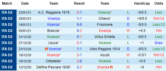 + Thống kê 10 trận gần nhất của Vicenza