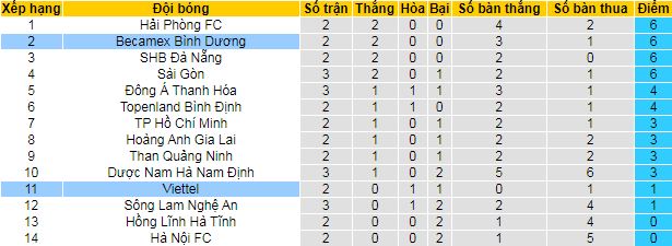 + Lịch sử đối đầu Viettel vs B.Bình Dương