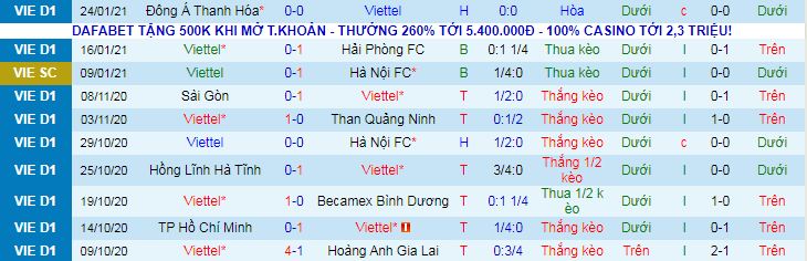 + Thống kê 10 trận gần nhất của Viettel