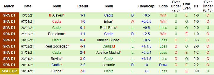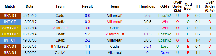 Lần gần nhất tiếp đón Cadiz trên sân nhà, Villarreal thắng tưng bừng với tỷ số 3-0. Nhưng điều đáng bàn là trận đấu đó, Villarreal chấp -2 theo kèo châu Á trước giờ bóng lăn. Lần tái đấu sắp tới, Cadiz chỉ được chấp +1 1/4 theo chỉ số tương tự.