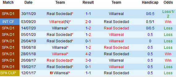 + Lịch sử đối đầu Villarreal vs Sociedad: