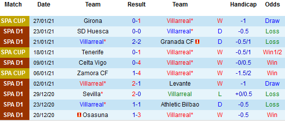 + Thống kê 10 trận gần nhất của Villarreal