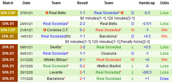 + Thống kê 10 trận gần nhất của Sociedad