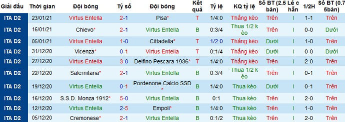 + Thống kê 10 trận gần nhất của Virtus Entella