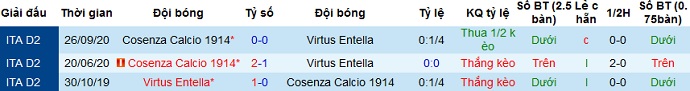 + Lịch sử đối đầu Virtus Entella vs Cosenza