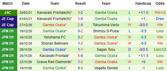 + Thống kê 10 trận gần nhất của Gamba Osaka
