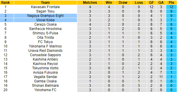 Cuộc chiến này rất đáng quan tâm ở vòng 4 J-League, bởi cả Vissel Kobe lẫn Nagoya Grampus đều khởi đầu khá hoàn hảo ở mùa giải năm nay và đều đang bất bại. Vissel Kobe có 2 chiến thắng và 1 trận hòa sau 3 vòng, tạm xếp thứ 4 trên BXH trong khi Nagoya Grampus toàn thắng và đứng ngay phía trên.