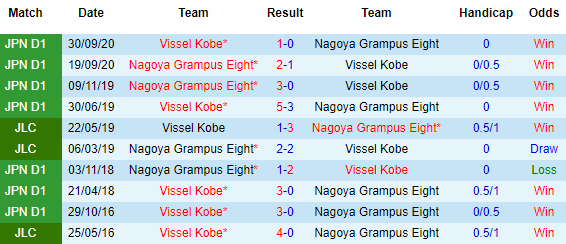 Mùa trước, sở dĩ Vissel Kobe không có thứ hạng cao chính bởi màn trình diễn thiếu thuyết phục tại sân nhà. Nhiệm vụ giành 3 điểm với Vissel Kobe trận này là không đơn giản, khi Nagoya Grampus đang cho thấy phong độ cực kỳ ấn tượng với mạch 9 trận bất bại liên tiếp và 4 thắng gần đây.