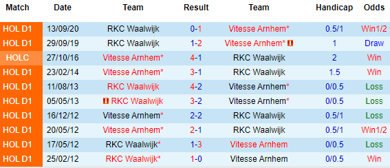 + Soi tỷ lệ kèo châu Á: Kèo chấp 1 1/2 nhà cái đưa ra dành cho Vitesse Arnhem trận này là khả quan với họ. Vitesse chính là đội dẫn đầu về khả năng thắng kèo (tỷ lệ đạt tới 73,68%), trong khi con số đó bên phía Waalwijk chỉ là 47,37%. Cả 4 lần đối đầu mới đây, Vitesse Arnhem đều không thua kèo (thắng tỷ lệ 3 lần).