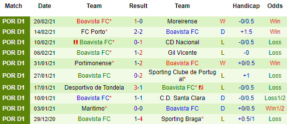 + Thống kê 10 trận gần nhất của Boavista