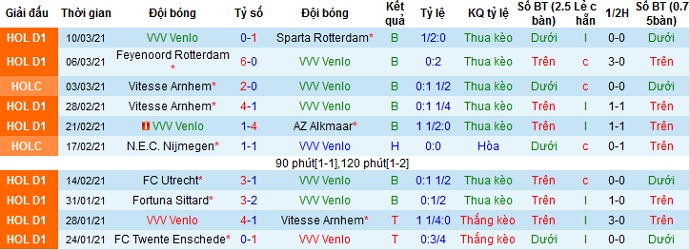 + Thống kê 10 trận gần nhất của VVV Venlo