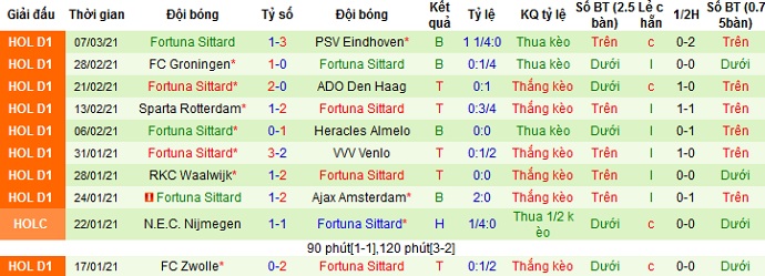 Phong độ của Fortuna Sittard cũng khá thất thường khi chỉ có được 2 trận thắng, để thua 3 trận sau 5 vòng đấu gần nhất. Thế nhưng nếu tính riêng tại giải vô địch trên sân khách Fortuna Sittard có được 4 chiến thắng liên tiếp trước khi để thua 0-1 trước Groningen ở lần du đấu gần nhất.