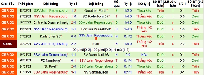 Tuy nhiên ở 5 trận đấu gần đây Jahn Regensburg chỉ có được 1 trận thắng, hòa 2 và để thua 2. Thành tích sân khách của Jahn Regensburg còn có phần tệ hơn khi thắng 1, hòa 1 và để thua 3 trong 5 lần du đấu gần nhất.