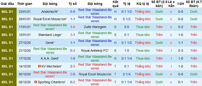 + Thống kê 10 trận gần nhất của Waasland-Beveren