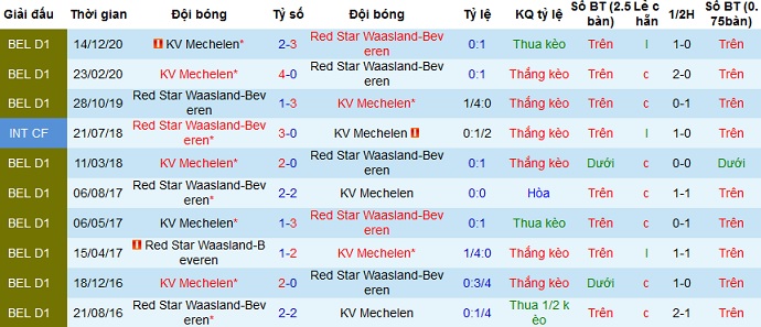 + Lịch sử đối đầu Waasland-Beveren vs Mechelen