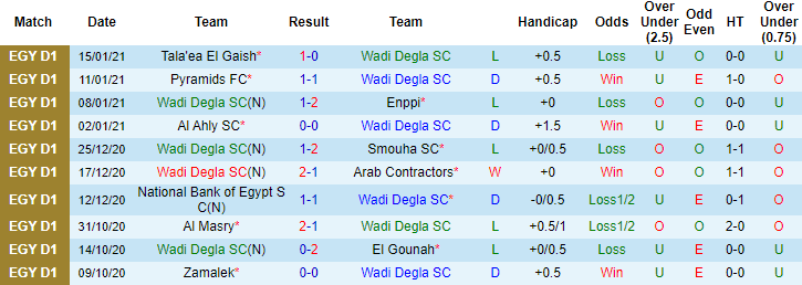 + Thống kê 10 trận gần nhất của Wadi Degla