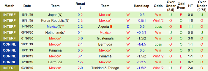 - Thống kê 10 trận gần nhất của Mexico