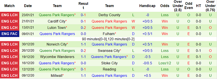 - Thống kê 10 trận gần nhất của QPR