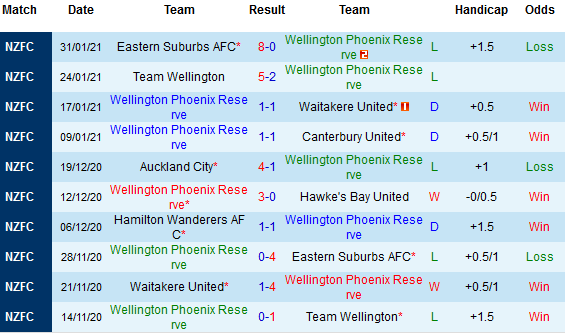 + Thống kê 10 trận gần nhất của Wellington Phoenix Res