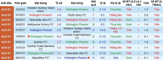 + Thống kê 10 trận gần nhất của Wellington Phoenix