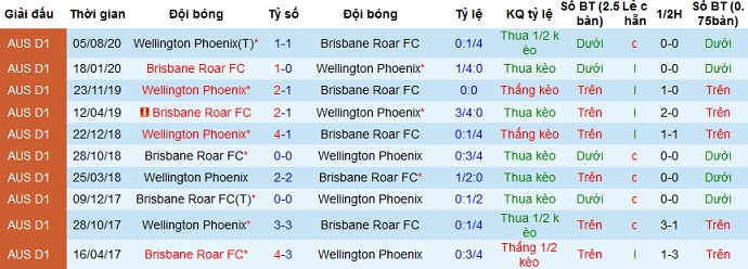 Thế nhưng trong cả 10 lần gặp nhau trước đó giữa hai đội chưa lần nào đội khách giành chiến thắng. Ngoài ra Wellington Phoenix lại có phong độ đang lên trong khi đội khách Brisbane Roar vẫn tiếp tục thi đấu sa sút nên chọn cửa dưới ở trận đấu này là hoàn toàn có cơ sở và rất hợp lý.