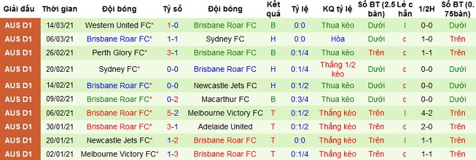 + Thống kê 10 trận gần nhất của Brisbane Roar