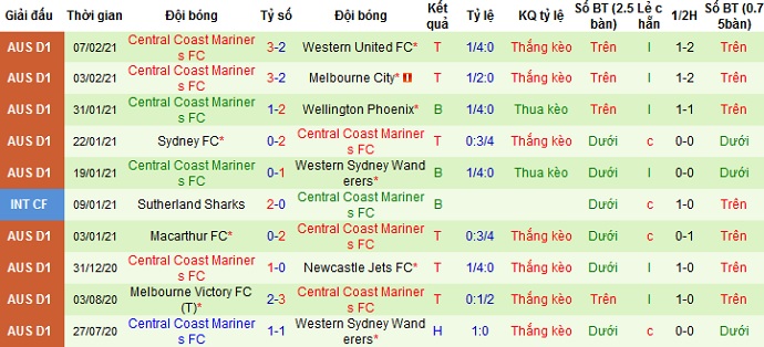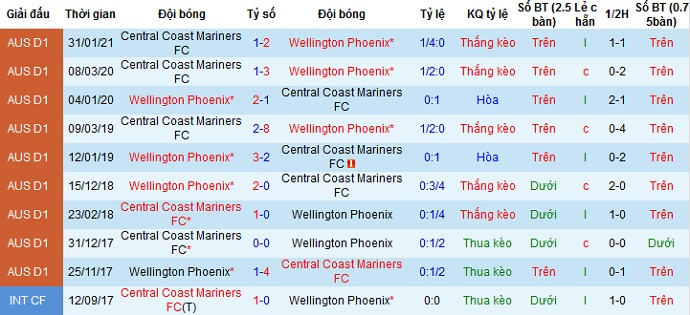 Ngoài ra Wellington Phoenix cũng giành chiến thắng trong cả 6 lần đối đầu gần nhất giữa hai đội. Tuy nhiên Central Coast Mariners với vị thế đang là đội đầu bảng và đã tạo ra rất nhiều bất ngờ cũng như có phong độ du đấu rất tốt nên chọn cửa dưới ở trận đấu này lại có phần an toàn và hợp lý hơn.