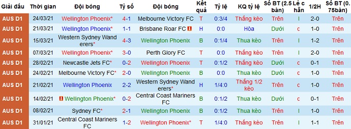 + Thống kê 10 trận gần nhất của Wellington Phoenix