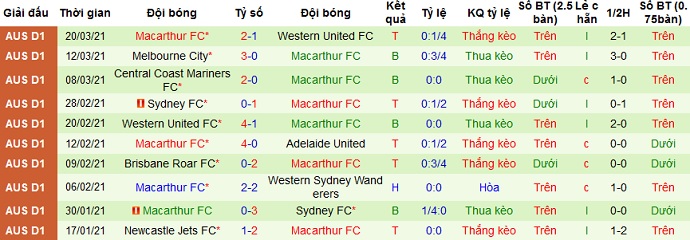 + Thống kê 10 trận gần nhất của Macarthur
