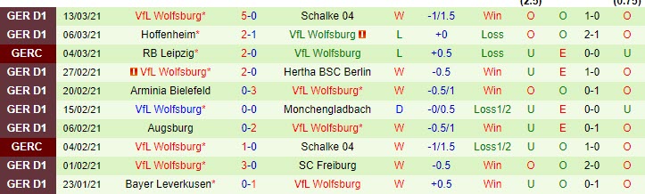 Chi tiết, Wolfsburg vừa nhận thất bại 2 trận sân khách vừa rồi. Nhìn rộng hơn, họ mới thắng 5 trong số 15 trận sân khách tại mọi đấu trường ở mùa giải năm nay. Với thống kê trên, Wolfsburg với kèo chấp hòa không phải lựa chọn đáng tin.