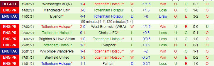 + Thống kê 10 trận gần nhất của Tottenham