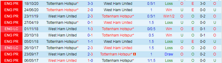 Phong độ và thống kê đối đầu West Ham - Tottenham gần đây: