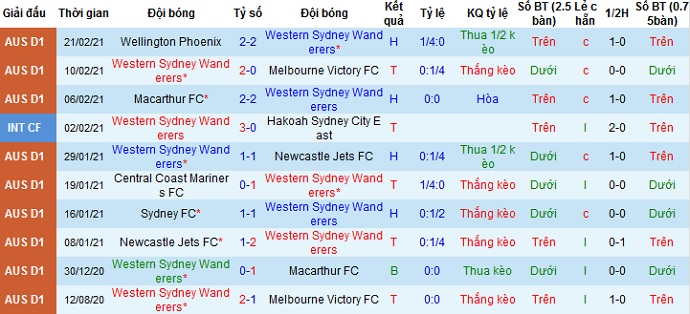 + Thống kê 10 trận gần nhất của Western Sydney