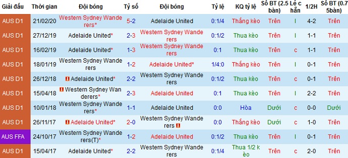 Trong 3 lần đối đầu gần nhất Western Sydney cũng đang chiếm ưu thế tuyệt đối khi toàn thắng ở cả 3 trận. Với phong độ kém cỏi của Adelaide United trên sân khách khi đang để thua ở cả 3 lần du đấu gần nhất thì việc chọn cửa trên là hoàn toàn có cơ sở và hợp lý.