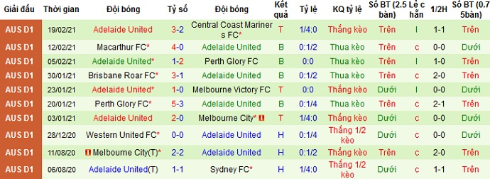 + Thống kê 10 trận gần nhất của Adelaide United
