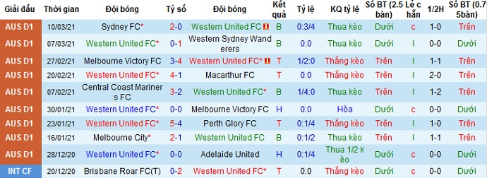 + Thống kê 10 trận gần nhất của Western United