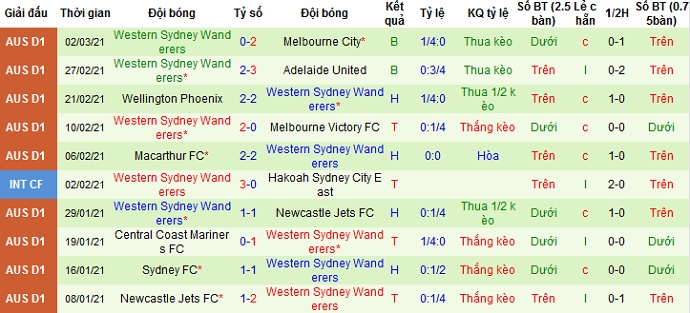 + Thống kê 10 trận gần nhất của Western Sydney