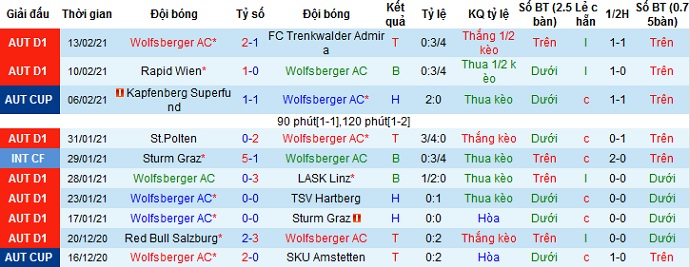 + Thống kê 10 trận gần nhất của Wolfsberger