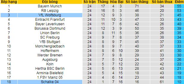 Wolfsburg đang thi đấu rất thành công ở mùa giải năm nay, đã giúp Bầy Sói hiện đang giành lấy vị trí trong top 3. Với mục tiêu là một vị tri nằm trong Top 4, thầy trò HLV Oliver Glasner chắc chắn vẫn sẽ đặt mục tiêu cao nhất ở trận đấu với Schalke.