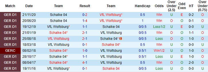 Lần gần nhất tiếp đón Schalke trên sân nhà, Wolfsburg gây thất vọng khi để đối thủ cầm hòa với tỷ số 1-1. Trong vòng 4 lần làm khách gần đây trên sân của Wolfsburg, Schalke bất bại tới 3 lần với 2 chiến thắng và 1 trận hòa. Tuy nhiên, điều đáng chú ý là ở 4 trận đấu đó, Wolfsburg chỉ chấp -1/4 và -1/2 theo kèo châu Á. Lần tái đấu sắp tới, chỉ số handicap có dấu hiệu đổi từ -3/4 sang -1 trước giờ bóng lăn.
