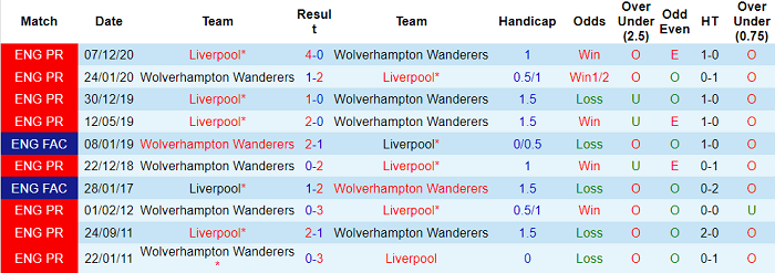 Tỷ lệ kèo Wolves vs Liverpool