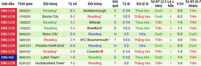 Tuy nhiên phong độ gần đây của Reading cũng khá tệ khi ở 5 vòng đấu gần nhất đội bóng cũng chỉ có được 1 trận thắng, 1 trận hòa và 3 trận thua. Tuy nhiên thành tích sân khách của Reading lại khá tốt với 2 trận thắng, 2 trận hòa và trận thua tại FA Cup trong 5 lần du đấu gần nhất.