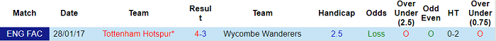 - Lịch sử đối đầu Wycombe vs Tottenham
