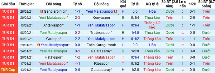 + Thống kê 10 trận gần nhất của Yeni Malatyaspor