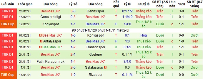 + Thống kê 10 trận gần nhất của Besiktas