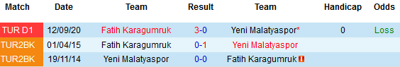 + Lịch sử đối đầu Yeni Malatyaspor vs Fatih Karagumruk