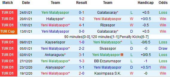 + Thống kê 10 trận gần nhất của Yeni Malatyaspor