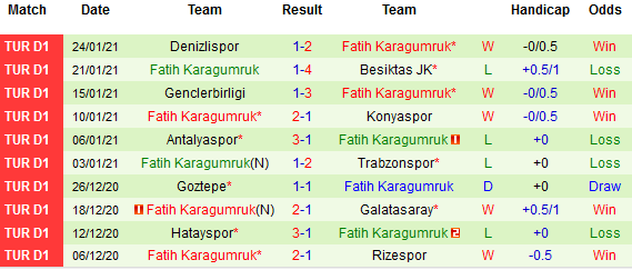 + Thống kê 10 trận gần nhất của Fatih Karagumruk