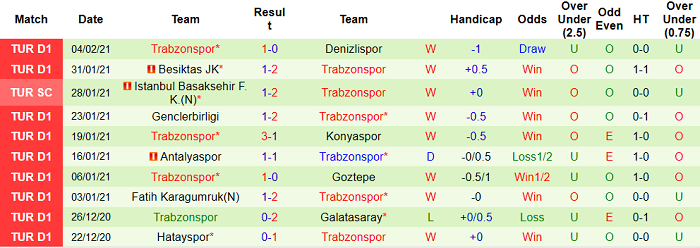 - Thống kê 10 trận gần nhất của Trabzonspor