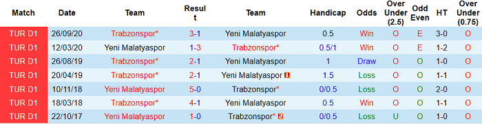Tỷ lệ kèo Yeni Malatyaspor vs Trabzonspor